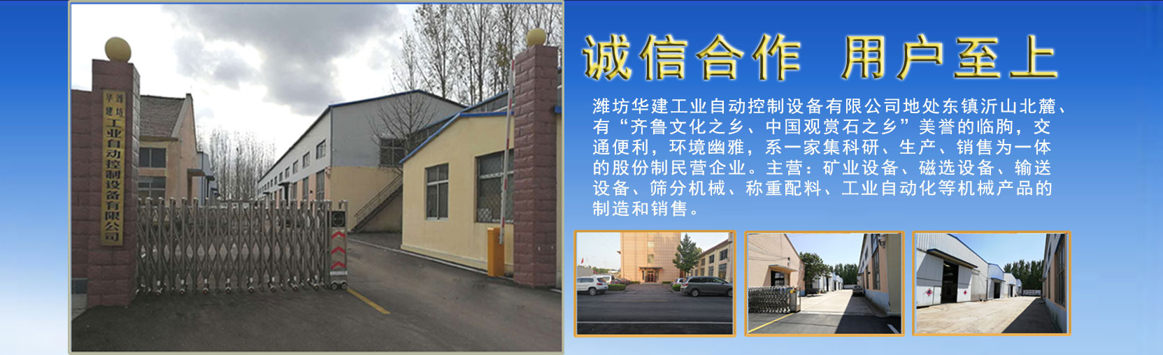 濰坊華建工業(yè)自動(dòng)控制設(shè)備有限公司始建于2002年,地處東鎮(zhèn)沂山北麓、有“齊魯文化之鄉(xiāng)、中國(guó)觀賞石之鄉(xiāng)”美譽(yù)的臨朐,交通便利,環(huán)境幽雅,系一家集設(shè)計(jì)、制造、生產(chǎn)、銷售為一體的股份制民營(yíng)企業(yè)。主營(yíng):礦業(yè)設(shè)備、磁選設(shè)備、輸送設(shè)備、篩分機(jī)械、稱重配料、工業(yè)自動(dòng)化等機(jī)械產(chǎn)品的制造和銷售。